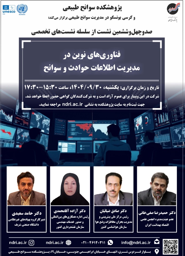 نشست فن آوری نوین در مدیریت اطلاعات حوادث وسوانح ۳۰ آذر ۱۴۰۴ | ۱۲:۰۴ کد : ۵۷۱۴۹ اطلاعیه ارسال به دیگران نام شما ایمیل شما ایمیل دریافتکننده ارسال انصراف تعداد بازدید:۲۰۶ دعوتنامه نشست فن آوری نوین در مدیریت اطلاعات حوادث وسوانح