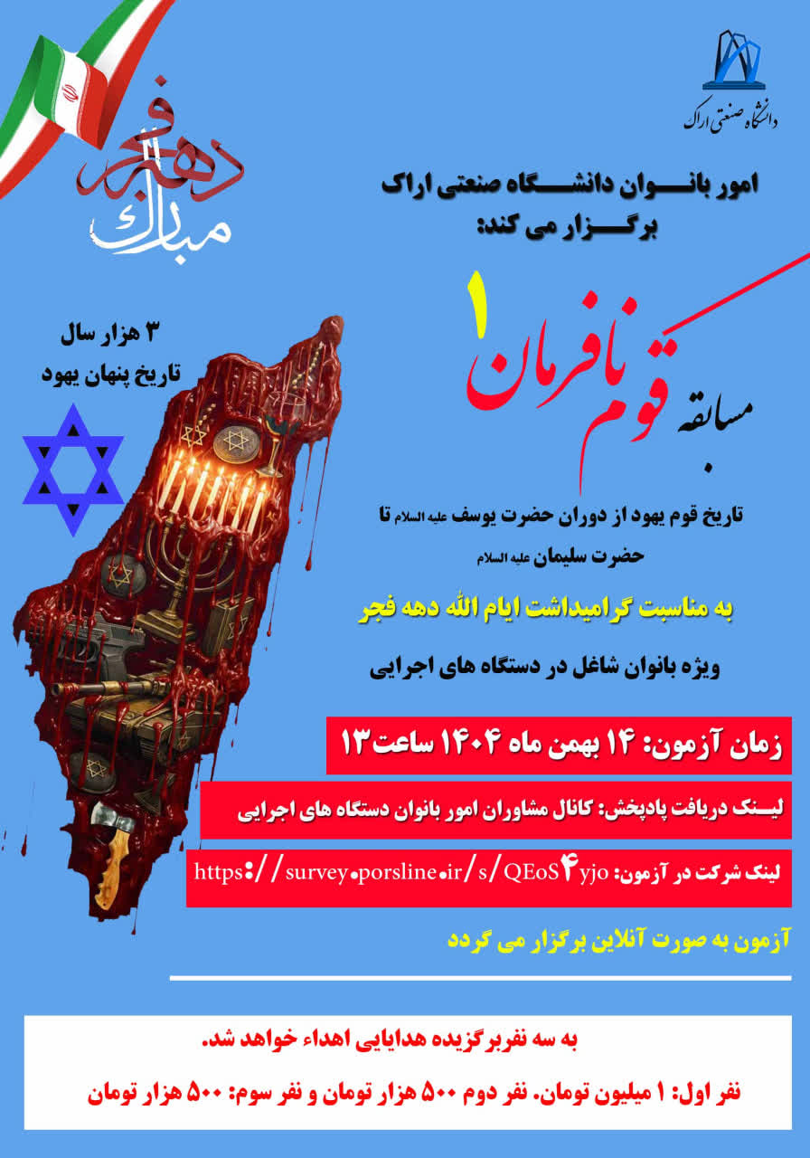 مسابقه قوم نافرمان ۰۸ بهمن ۱۴۰۴ | ۱۰:۳۹ کد : ۵۷۷۴۳ اطلاعیه ارسال به دیگران نام شما ایمیل شما ایمیل دریافتکننده ارسال انصراف تعداد بازدید:۱۲۴ برگزاری مسابقه قوم نافرمان، در ایام الله دهه فجر